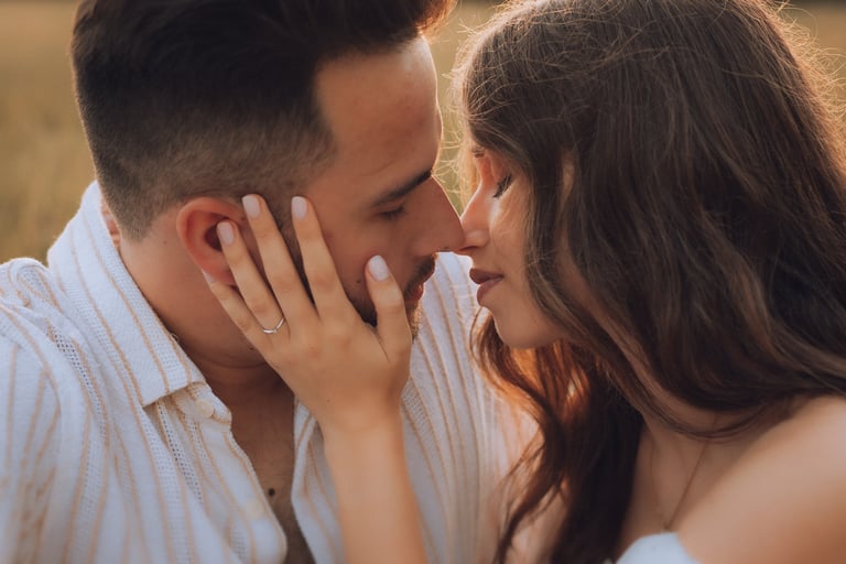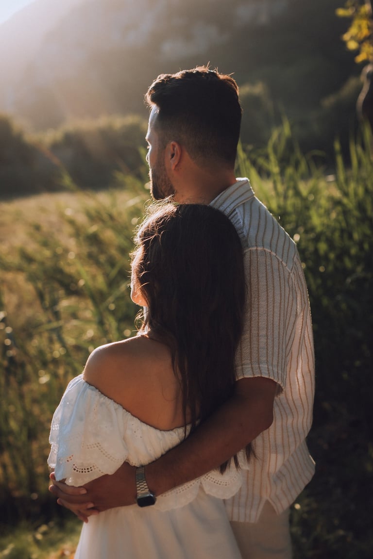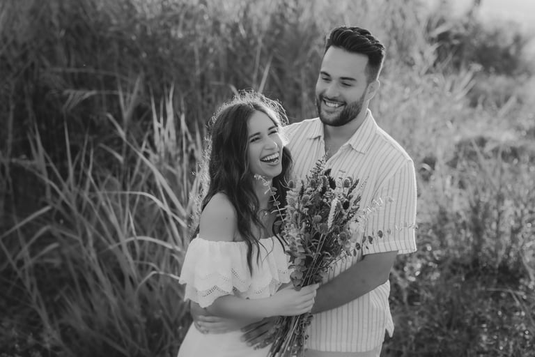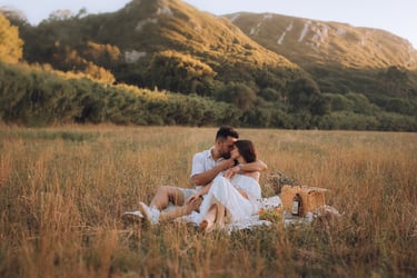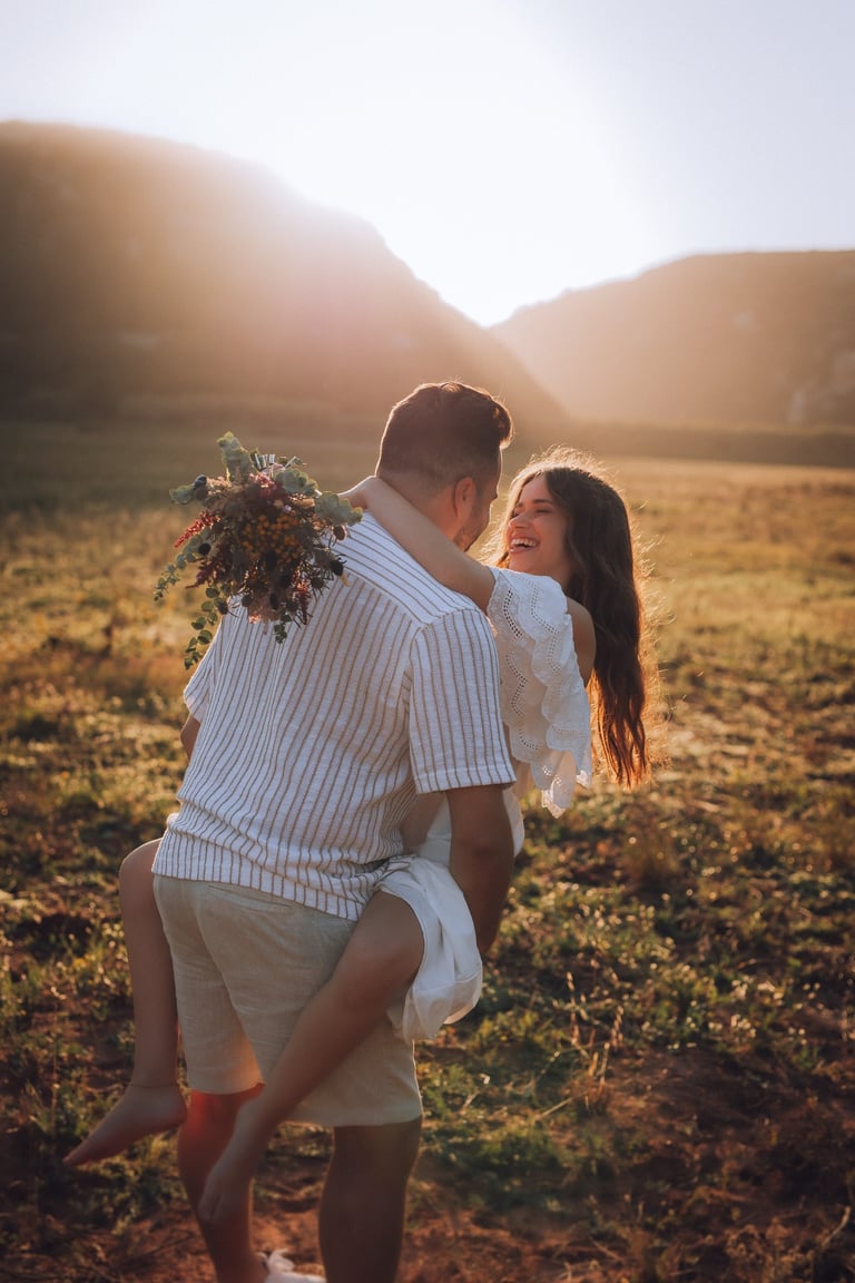 Entre campos dourados e a luz suave do pôr do sol, Joana e Artur viveram uma tarde de sorrisos, cumplicidade e romance que pareceu parar o tempo.