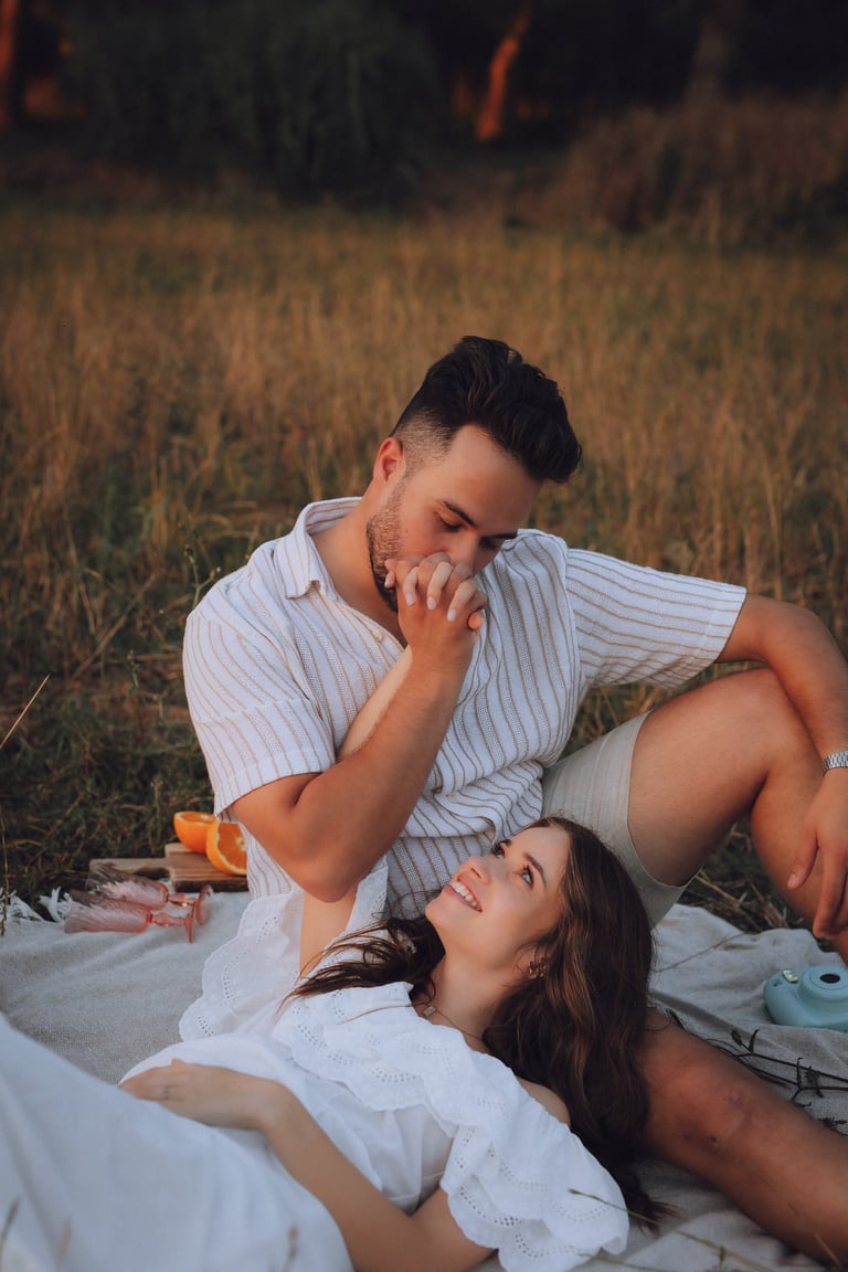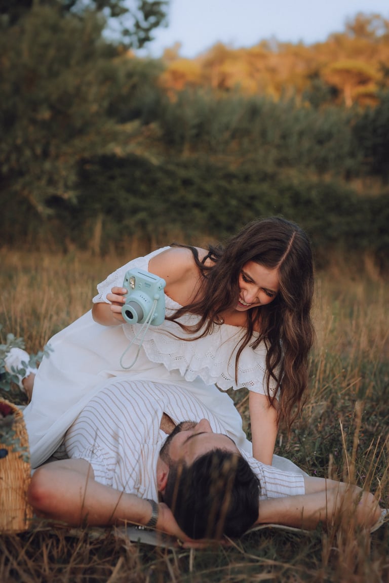 Nos campos de erva do Vimeiro, a Joana e o Artur mostraram como é fácil ser feliz a dois. Entre risos, olhares cúmplices e um pôr do sol de tirar o fôlego, desfrutaram de um piquenique com vinho, queijo e fruta, onde a espontaneidade e a alegria do momento conduziram cada foto. Uma sessão leve, divertida e cheia de amor.