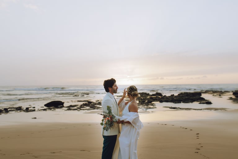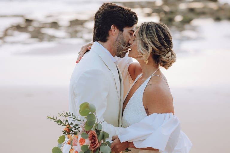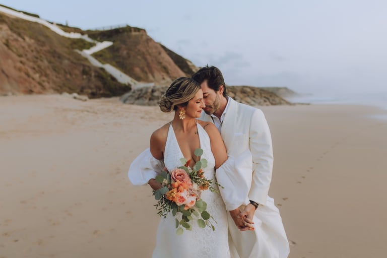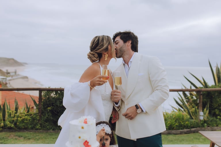 Depois, desceram até à praia para um momento a dois, onde o tempo pareceu abrandar. Entre a luz suave e o som das ondas, criaram memórias leves e autênticas, antes de regressarem para um jantar ao pôr do sol, partilhado com os mais próximos.