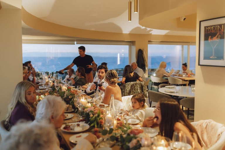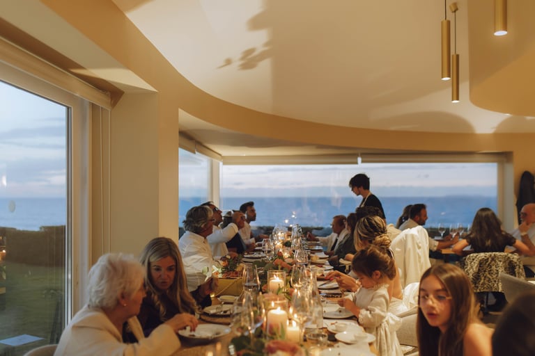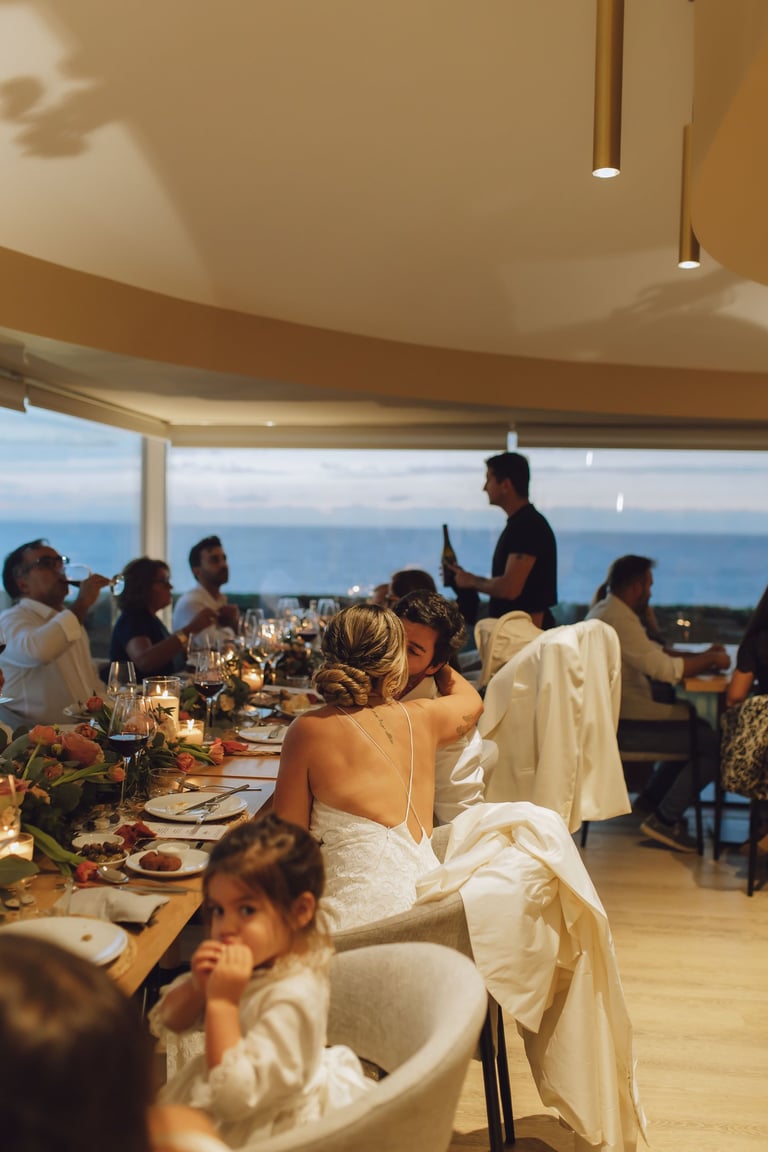Para terminar, um jantar ao pôr do sol, simples e acolhedor, rodeados pelos familiares mais próximos. Entre conversas, risos e brindes, Sara e João celebraram o amor que os unia, num ambiente descontraído e cheio de significado, perfeito para encerrar um dia tão especial.
